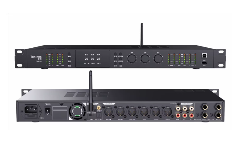 中创 QH-2A 蓝牙版是面向 KTV、家庭 K 歌、小型演出的全中文数字前级效果器,主打蓝牙高音质、双话筒独立、防啸叫、动态均衡、电脑可视化调音,操作友好、性价比突出。一、核心定位与定位类型:数字前级效果器(带蓝牙、光纤、模拟输入)核心用途:KTV 包房、家庭 K 歌、小型演出、会议扩声核心优势:全中文界面 + 高规格蓝牙 + 双话筒独立 + 防啸叫 + 动态 EQ + 电脑软件二、关键参数(蓝