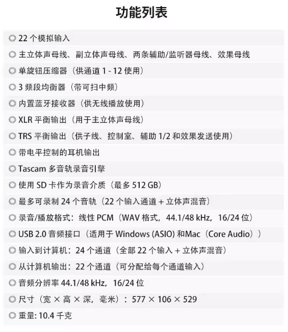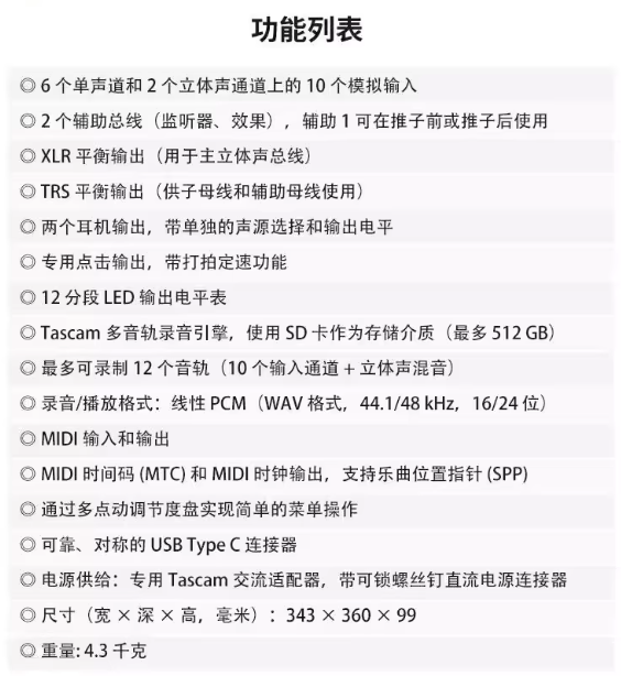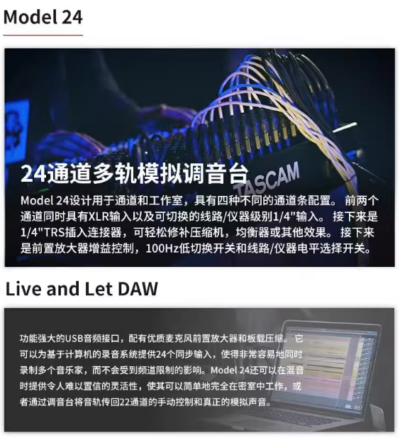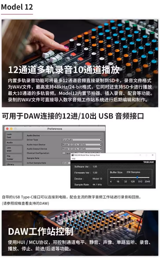 TASCAM model 12 16 24小型现场演出多轨录音 音乐制作 USB调音台